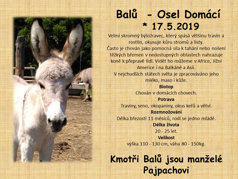 Oslička Balů *17.5.2019 - Balů své kmotry našla. Děkujeme manželům Pajpachovým.