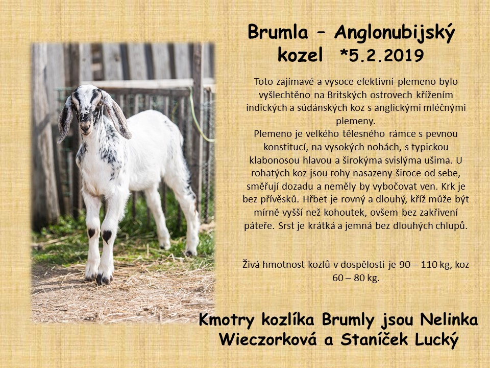 Kozlík Brumla *5.2.2019 - Brumla své kmotry našel děkujeme Nelince Wieczorkové a Stáníčkovi Luckému