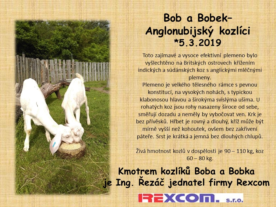Kozlíci Bob a Bobek - své kmotra našly. Děkujeme Ing. Řezáčovi a firmě Rexcom