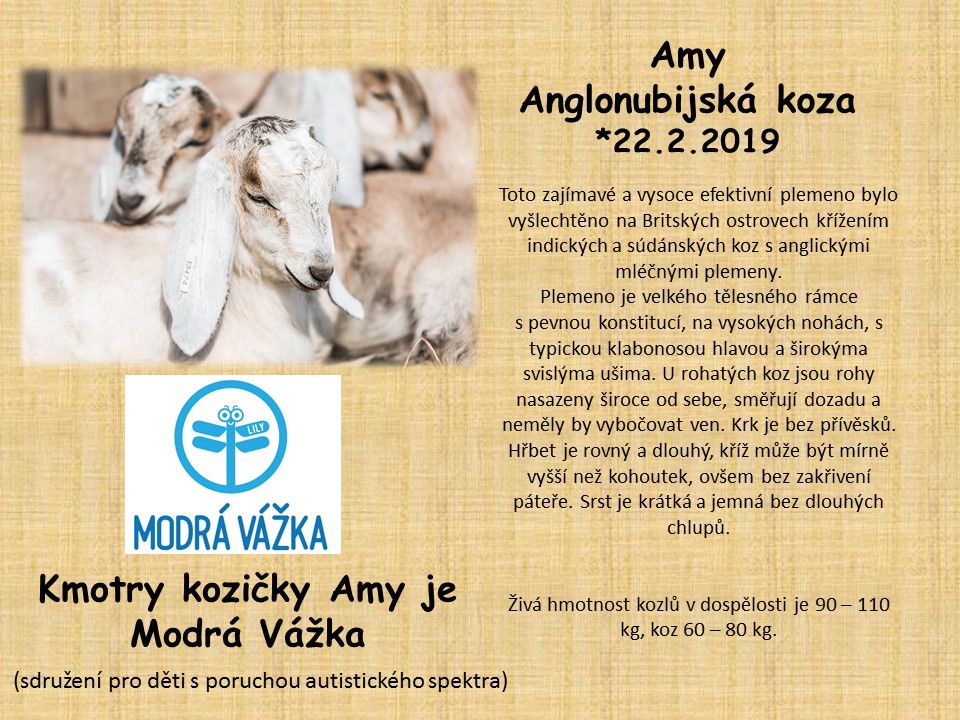 Kozička Amy *22.2.2019 - své kmotry našla. Děkujeme Modré vážce.